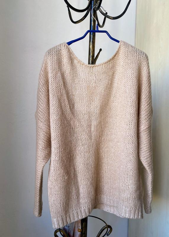 Свитер женский пудрового цвета, в составе присутствует шерсть, ширина под рукавами 60 см, длина 63 см,