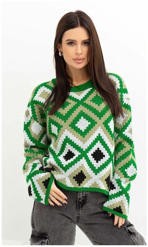 Теплый вязаный свитер в этно-стиле арт. lz. "лайт" Материал: вязаный трикотаж Размер: oversize 42-48 Состав пряжи: 50% шерсть, 50% акрил Сезон: зима, весна, осень Этот яркий вязаный свитер станет настоящей изюминкой вашего гардероба! Благодаря геометрическому орнаменту привлекает внимание и добавляет свежести любому образу. Идеально подходит для прохладной осени или зимы. Мягкая ткань обеспечивает комфорт и уют в течение всего дня. Универсальный стиль: отлично сочетается с джинсами, брюками или юбками. Качественная вязка: устойчива к износу и долго сохраняет форму. Заказывайте уже сегодня и добавьте в свой гардероб стильный акцент!