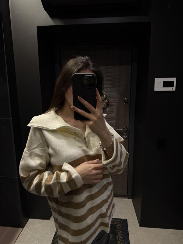 Светр в полоску з красивим комірцем. Оверсайз