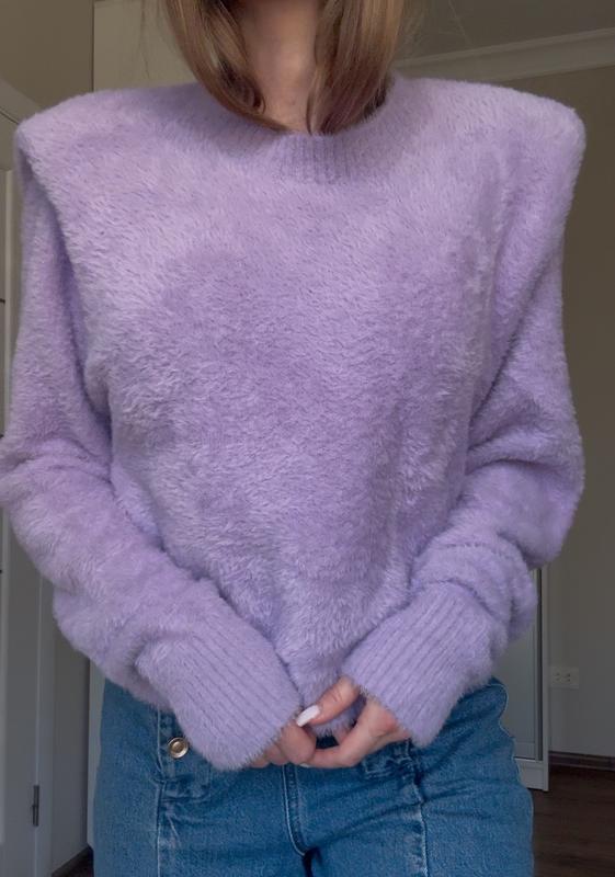 Невероятно мягкий и теплый свитерик с мягкими плечиками🌸по бірці s по факту сяде на m ПОГ 55 ПОТ 51 Дл. 51 Рукав 70 Тянется