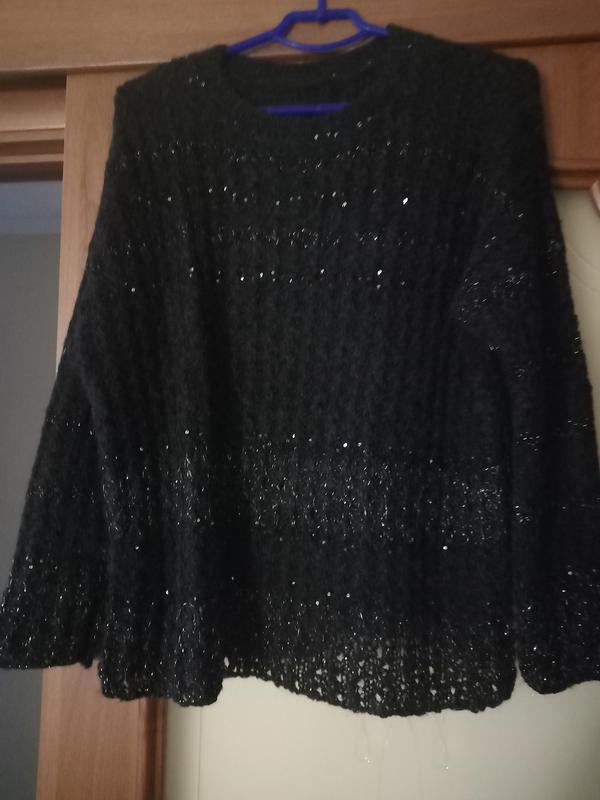 Черный свитер из качественного, не колючего мохера, новый, ручная работа. Пряжа с люрексом и пайетками