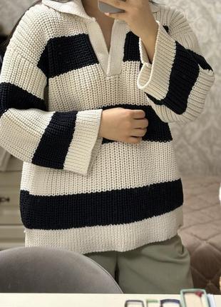 Женский свитер, свободного кроя, длинной длины, в полоску без дефектов