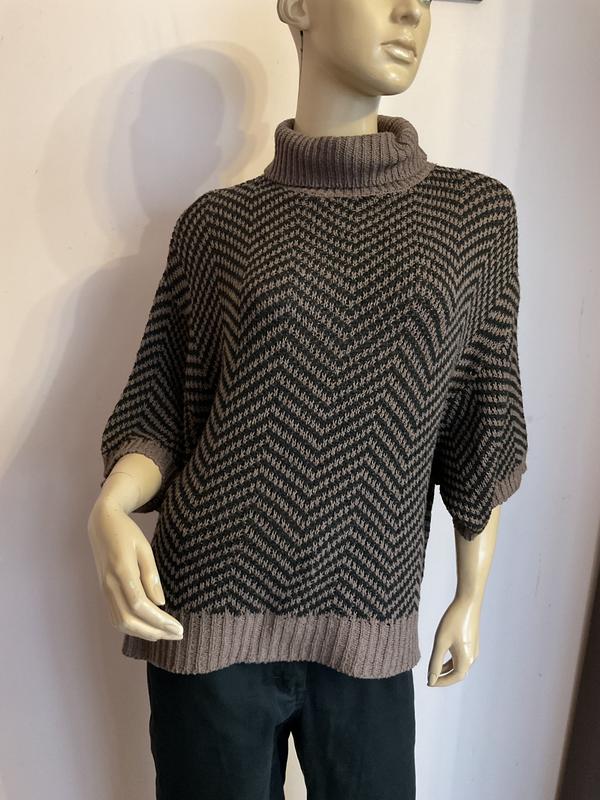 Красивый, прыемный теплый свитер. Рукав приспущен. Без дефектов. В груди 69 см низ 59 см э разрезы. Длина 58 см рукав приспущен от горловины 44 см по окружности руки 31 см 22:1:25