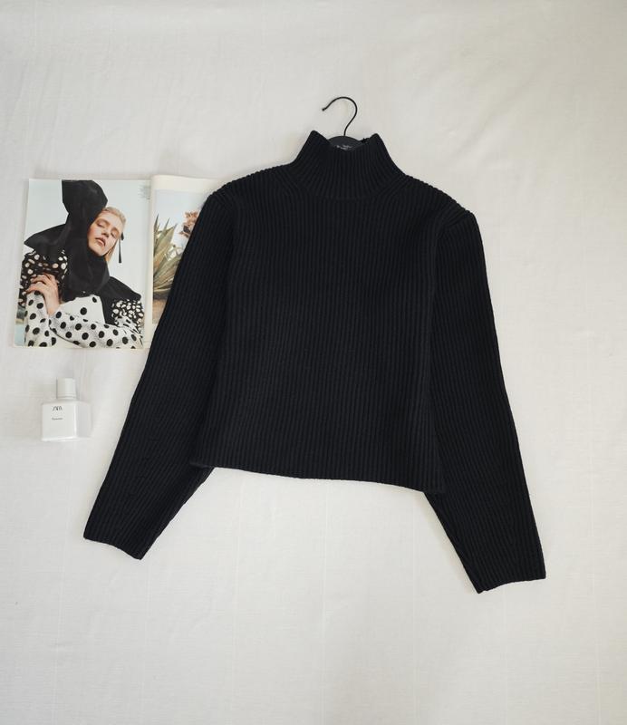 🌿теплый вязаный свитер H&M со стойкой, содержит шерсть 5% Размер S черный Замеры ПО груди 44 см, длина 50 см, рукав 62 см