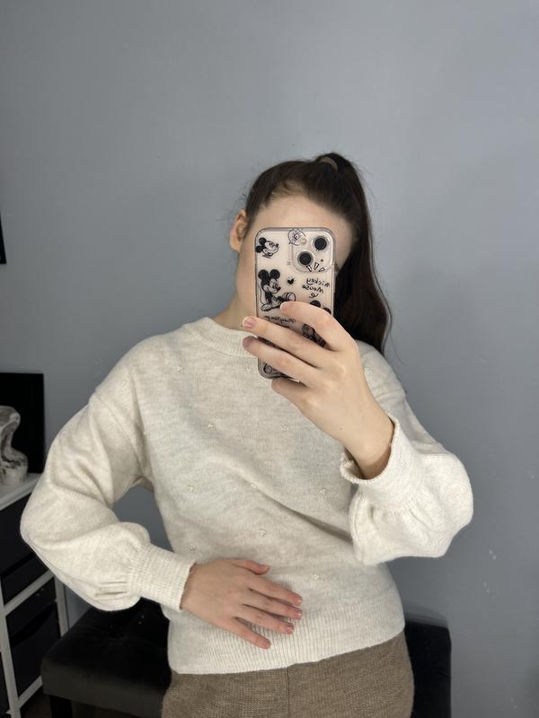 Светер в мелкую жемчужину с рукавом фонарик. Молочного цвета xs-s. Идеальное состояние.