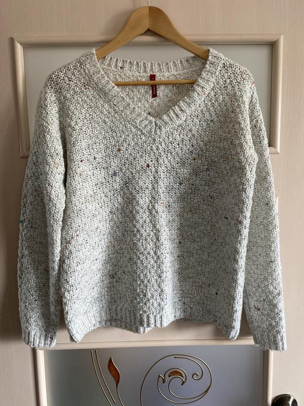 Жіночий светр, розмір М. Світлого кольору, середньої вʼязки. Довжина по спинці-60 см Напівобхват грудей -55 см Довжина рукава-52 см