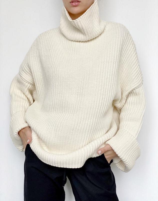 Свитер оверсайз прямого кроя с горлом и широким рукавом.