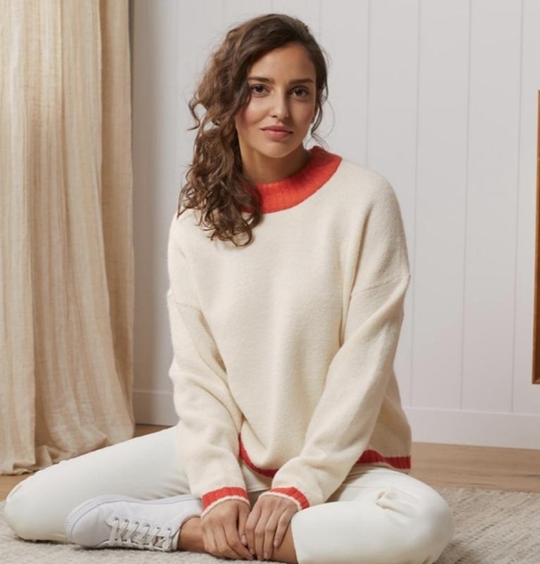 🌿молочный свитер с яркими манжетами свободного кроя, ткань мягкая, приятная на ощупь, содержит шерсть 8% Размер:L Замеры:ПО груди 61 см, длина 56 см, рукав от горловины 72 см