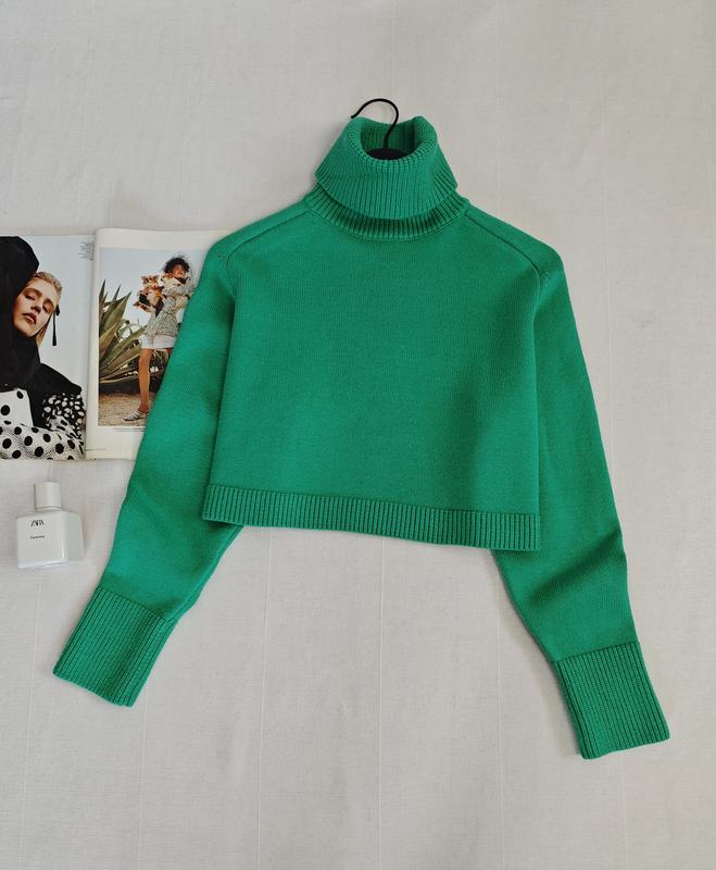 🌿зеленый свитер от Zara свободного кроя, модель укороченная, ткань плотная, красиво держит форму Размер:М Замеры:ПО груди 57 см, длина 40 см, рукав от горловины 70 см