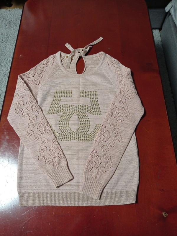 Розовый свитер с ажурным рукавом.Рлзмир С. Стан - идеальный.