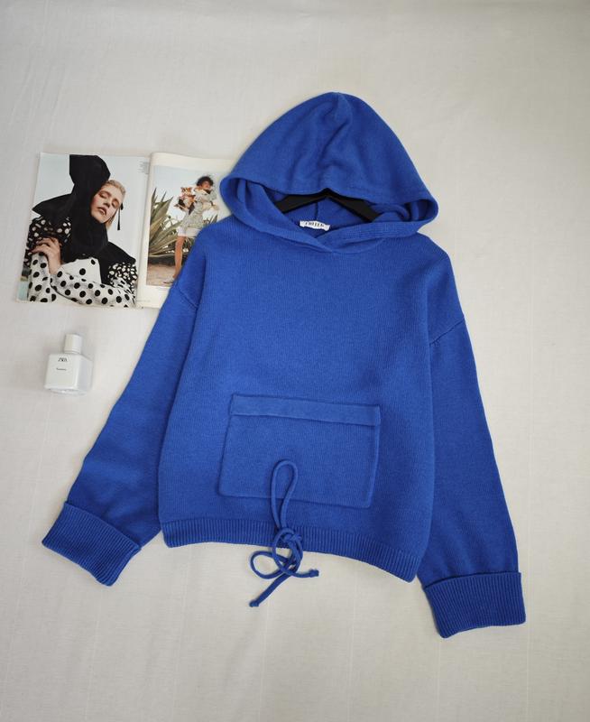 🌿синий свитер с капюшоном Edited свободного кроя, ткань мягкая и теплая, содержит шерсть 30% и кашемир 5% Размер:40 Замеры:ПО груди 63 см, длина 58 см, рукав от горловины 72 см
