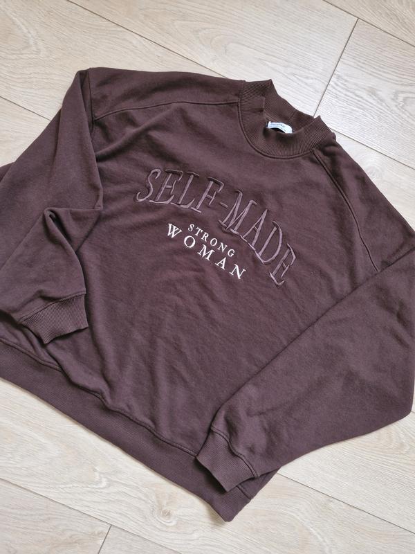 Свитшот, цвета темный шоколад, на фото смотрится светлее, состояние идеальный, ног 62-63, рукав не узкий, скрадывается полное рукоятки, Ткань трехнитка-петля, очень приятная на ощупь. размер указан s, но это батальный