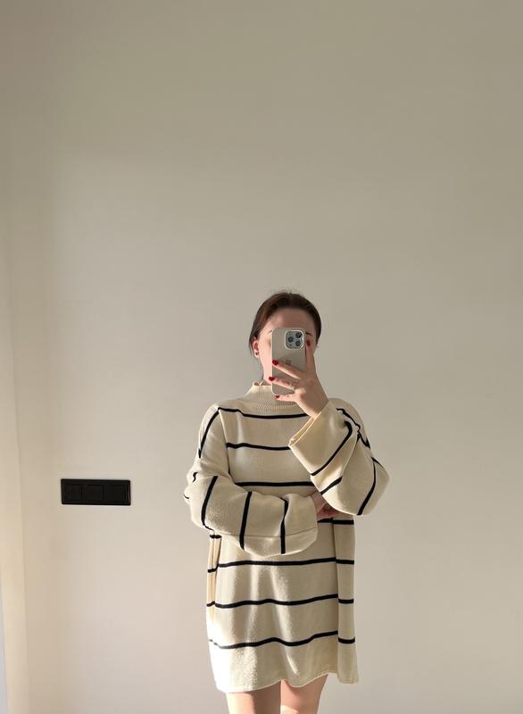 Свитер-туника, бежевый в черную полоска, размер оверсайз