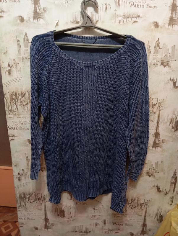 Вязанный свитер, типа выгоревший. отлично тянется. Рукав - 74см от горловины. Пог, пот, поб - 70см, длина - 74см.