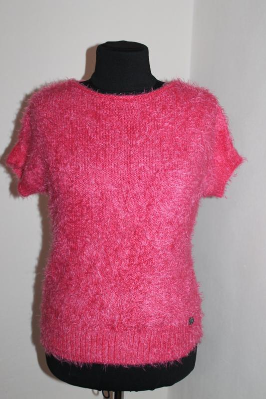 Класна кофточка якраво- рожевого кольору придбана в Європі,розмір М вказано, одягнуто на манекен 52 розміру.Довжина-66см, плечевий шов-26см, пог-59см.