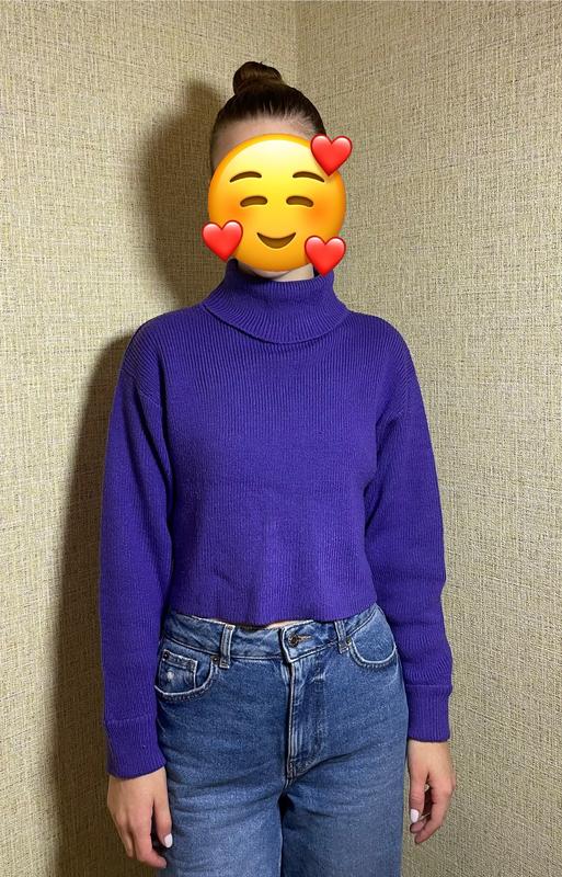 Светр вкорочений Фиолетовый, без дефектов Размер -S Длина - 41 см Полуобхват - 44 см Длина рукава (от плеча) - 50 см Мои параметры: ОБ 80, ОТ 65, ОБ 90