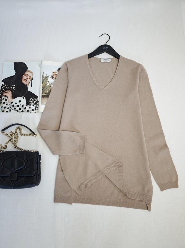 🌿бежевый свитер M@x M@ra удлиненной модели с разрезами по бокам, ткань шерсть и кашемир Размер:М Замеры:ПО груди 47 см, длина 71 см, рукав 65 см