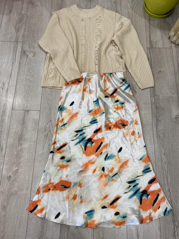 Набор женской одежды новый без бумажной бирки размером кофта М, а юбка S.Замеры кофты:58-грудь,52-рукав приспущен,61-длина.Юбка:34-пояс,83-длина.