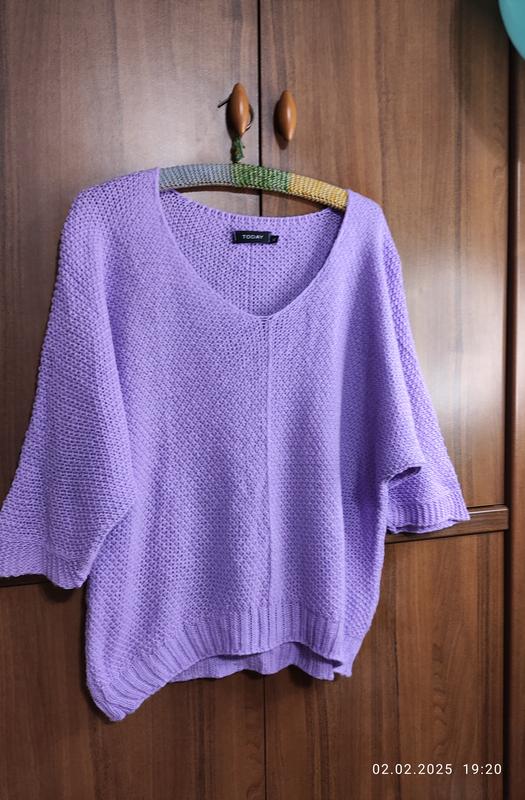 красивый новый свитер цвета лаванды. тоненькая паутина. свитер замечательный. длина64 ширина60 рукав от горловины 50