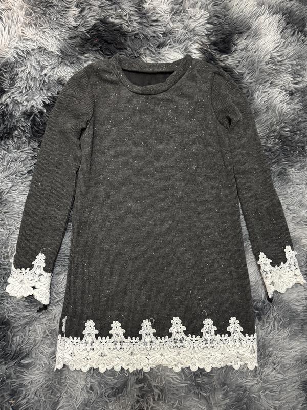 Очень красивый свитер в рубчик с люрексовой нитью и дорогим белым кружевом по низу Красиво переливается на свету Размер S (42-44) Хороший, производитель Турция Бирки отсутствуют В наличии 2 шт
