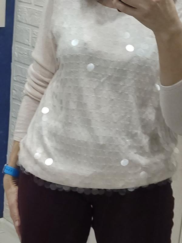 Свитер длина 65 см, плечи 48 см, длина рукава 63 см, ПОГ 52 см, ПО низ 51 см Брюки ПОТ 43 см, ПОС 51 см, высота посадки 30/36 см, шаговой шов 74см, внешний шов 103 см