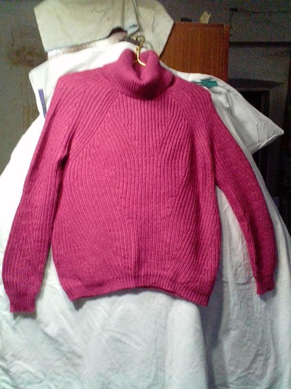 Стан нового. Цвет немножко темнее, чем на фото 1. НОГ- в спокої - 48 см, тягнеться до 58 см Пот - в покое - 48 см, тянется до 58 см НО по низу - в спокої - 45 см, тягнеться до - 58 см Длина от плеча - 62 см Состав, размер и страна производитель на фото