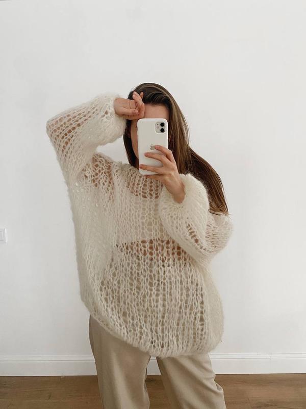 Стильный и женственный свитер-паутинка из премиальной шерсти. Очень нежный и мягкий. Ручная работа.