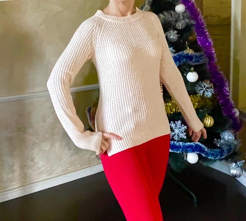 Atmosphere светер ніжно- персікового кольору. Розмір 6/34. Фото на моделі з розміром S. Довжина 62 см. ПОГ 38 тягнеться до 53 см. Рукав від ворота 68 см. Акріл. Стан б/у, відмінний, сток.