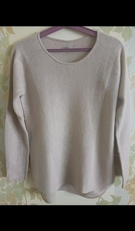 Нежный кашемировый свитер Madison, идеал, цвет не передавался, немного темнее. Плечевого шва нет,ног 49, рукав от шеи 66, длина спереди 65, сзади 70.