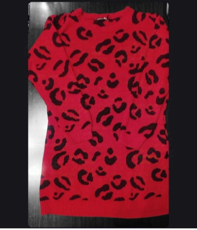Теплый свитер красного цвета с леопардовым принтом.Состояние 9/10,в идеальном состоянии. длина-80 пог-52