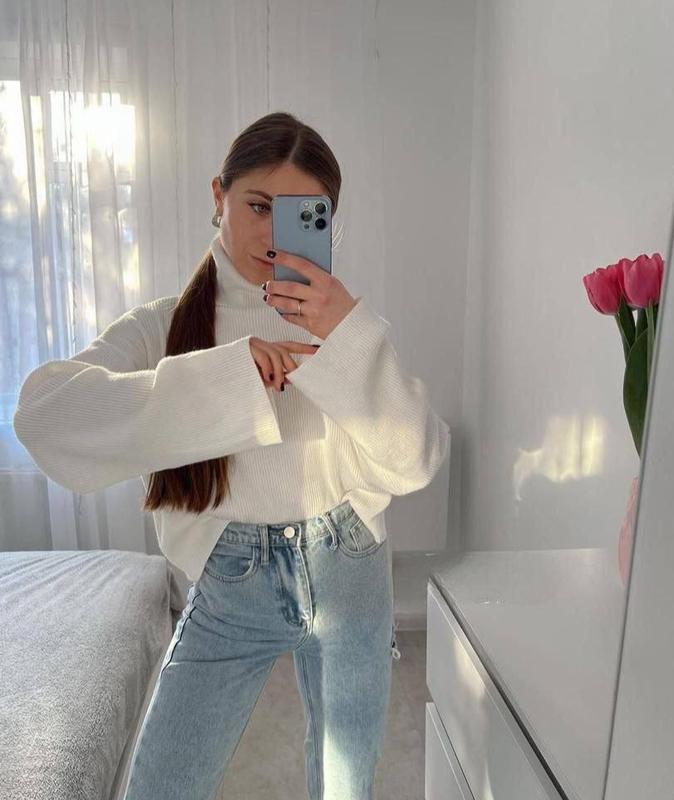 Свитер под горло🔥🔥🔥 Очень приятный на ощупь, мягкий - моделька просто топчик🤩🤩🤩 Материал трикотаж, евро-рубчик Демисезонность Размер 2 замера на фото Цвет черный и молочный🌺