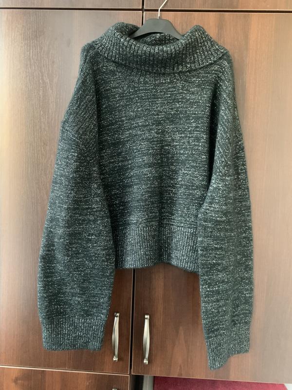 Крутий светр темно зелений, з люрексом, колір останні фото, чудовий склад, теплий, мʼякий, широкі довгі рукава, дорогий бренд, верхня бірка трохи надрізана, без паперової бірки, аутлет, новий! Довжина 54, лінія плеча і пахви сильно спущена, рукав від коміра 77, пахви 65-75, низ 55, знижка!