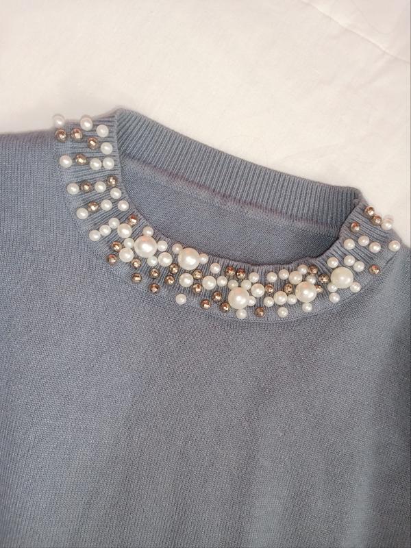Нарядный свитер голубого цвета с бусинами🤩 Чрезвычайно хороший вариант для сочетания с юбкой или брюками🙌🏻 РАЗМЕР : 42-46 ( ТЯГНЕТСЯ) Детали в пп🙌🏻