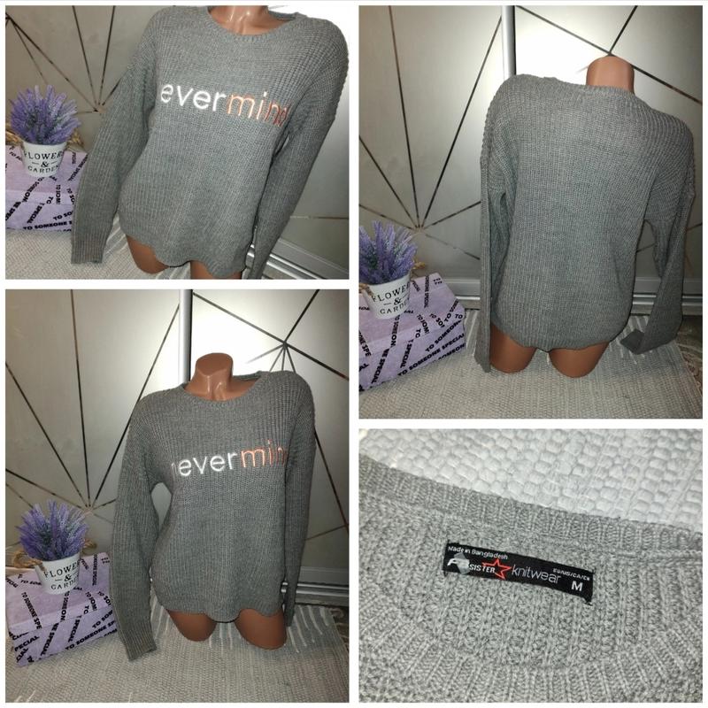 Стильный свитерик с вышитой надписью Размер М пог 61 длина 58 рукав от горловины 74 Состояние отлично