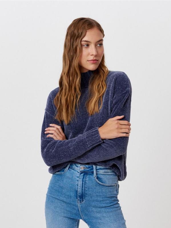 Бархатный свитер, сине-серый, с воротником Размер хs Cropp