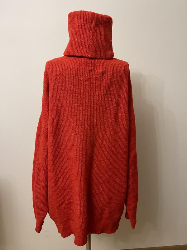 Свитер - оверсайз красного-оранжевого цвета, бренд Dilvin knit. Акрил/ полиэстер. Ширина 80 см, длина 81 см, рукав от горловины 87 см, ширина рукава 25 см.