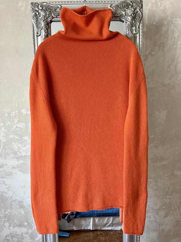 Тоненький легенький кашеміровий светр з високим воротом,надзвичайно мʼякий;італійська якість 🤩заміри:пог-49,3см,низ-51см,плечі-44,5см, довжина рукава-61,8см, довжина по спині (з урахуванням ворота)-77см,воріт цільний з основною частиною светра,висота ворота ~16см;довжина светра без урахування ворота-61см