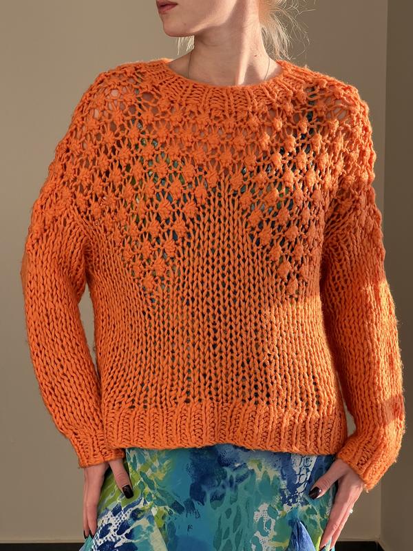 Вязаный оранжевый свитер. Бренд Name it. Очень теплый. Акрил. Не кусается Размер ХС-С