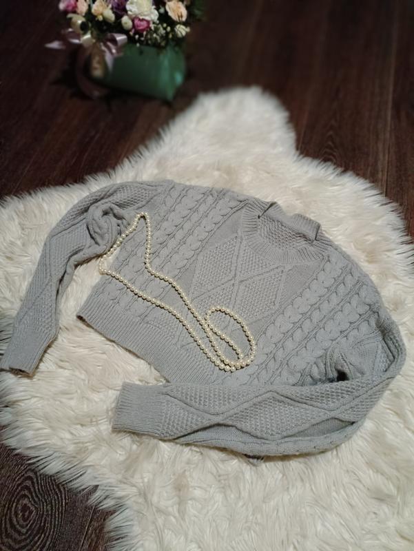 укороченный свитер серого цвета, чрезвычайно приятный к телу, милый узор в вязке