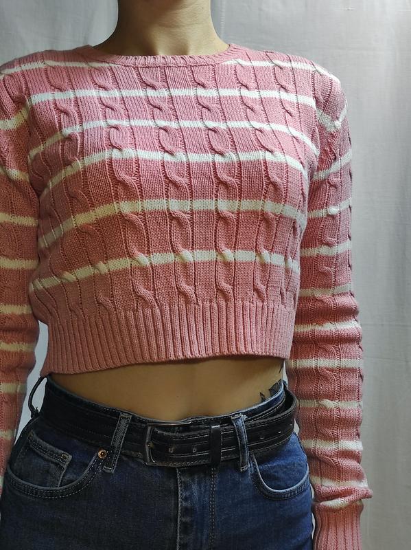 Женский укороченный свитер Цвет: нежно-розовый и белый Размер: S/М (хорошо тянется) Состояние: идеальный (без дефектов) Примечание: бирка срезана, потому что она меня кусала Замеры: Полу обхват груди: 46 НО плечей: 41 Длина:41 Длина рукава: 63 Обратите внимание, что возврат нет! По добавочной информации и фото обратитесь в дырэкт 🙂