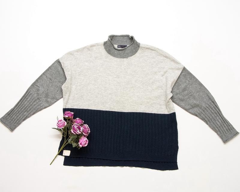 Классный крутезный свитер Marks & Spencer. Очень эффектный, свободный, мягкий, эластичный, в стиле оверсайз, с акцентным колор блоком в сочетании гладкой и рельефной вязки. Линия плеча сильно спущена, спинка длиннее переда, внизу по бокам небольшие разрезы. Вещь универсальная, отлично садится на любую фигуру, легко сочетается с любым низом. Состав: 70% акрил, 16% полиамид, 14% шерсть Размер указан XL, по факту запросто подойдет на больший. Замеры тут: по груди 70+ см по талии 68+ см по бедрам 68+ см длина 65-70 см (спинка длиннее переда) от горловины до низа рукава 77 см Состояние безупречное. Обмена и возврата нет. Ф130124