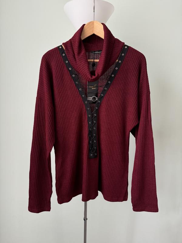 Новая кофта с красивым вырезом на завязках, регулируются. Ткань мягушка, хорошо тянется. Размер 4XL, лучше подойдет на чуточку поменьше. Замеры: Плечи приспущенные- 68 см Рукав от подпахвы - 49 см Пог - 60 см Пот - 50 см Ширина по низу - 60 см Длина - 67 см Отправка после передоплаты 200 грн или полной оплаты, любой по почте / безопасная оплата
