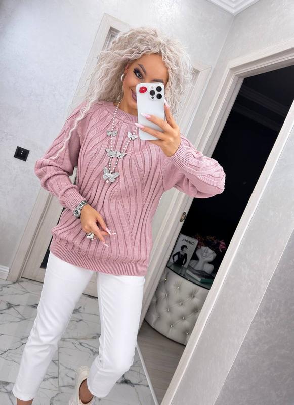 Свитер «ПИОН» с фактурной вязкой! 👌🏼🌺 Состав : 50% шерсть, 50% акрил. 🧶🐏 Размеры: 46-48 ( универсальный)!😍 Цвета в наличии: - БУЗОК; - МОЛОКО; - ГОЛУБИЙ; - СВЕТА ПУДРА! Замеры: -ширина свитерика 54-66( тянется еще больше); - длина свитерика 68 от плеча, по переду и спинке-63 см; - длина рукава от горловины 72, с горловиной 76см.