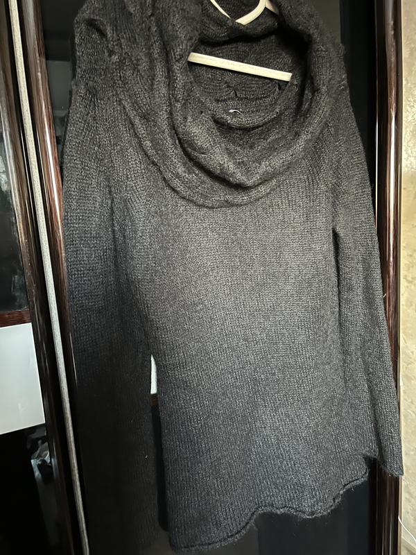 Брендовий,мохеровий ,теплий светр. Розмір вказаний L. Пог 48см , тягнеться, довжина 66см. Модель светра така,що носиться з відкритими плечами.Стан ідеальний