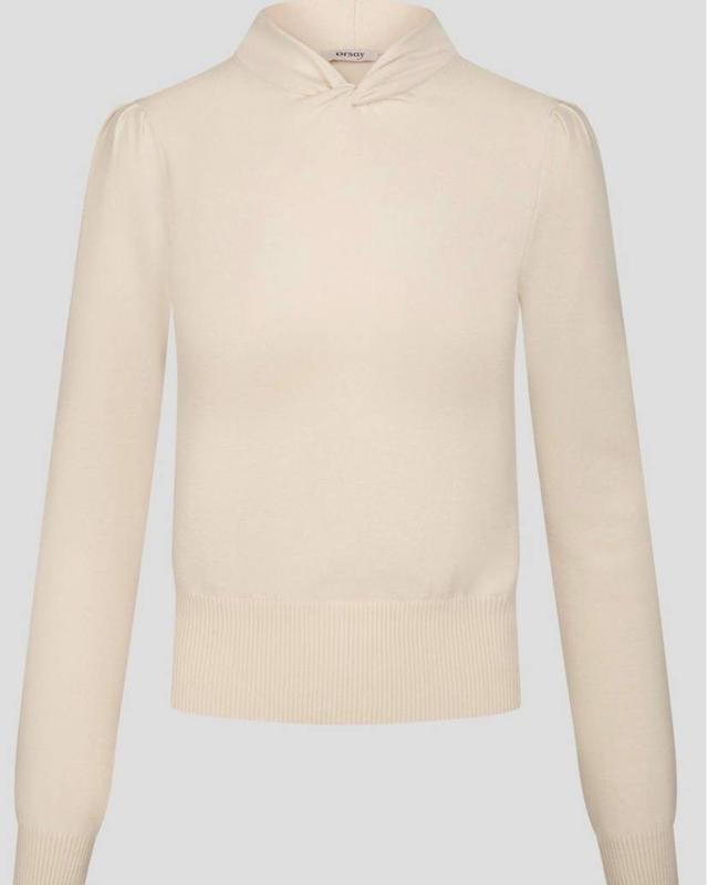 Этот мягкий свитер обеспечит высочайший уровень комфорта. Стильный воротник-стойка создает модный акцент, а тонкие рукава буф завершают образ.