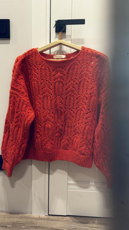 Оранжевий светр, оверсайз Приятный и теплый, не смотря на вязку Красивый узор Цвет приведения не такой «кислотный», однако достаточно насыщенный