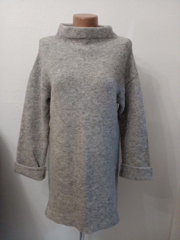 Стан бу, следы ношения минимальны, есть пара мелких катышков, но их не видно, так как свитер меланжевый и полотно напоминает буклированную. Имеет в составе 14% шерсти.Размер по бирке 36, С, но я заключалась на ХЛ,2 ХЛ. Плечи-спущенные Пог-50-60 Поб-56-63 Рукав-72( от ворота) Длина-80