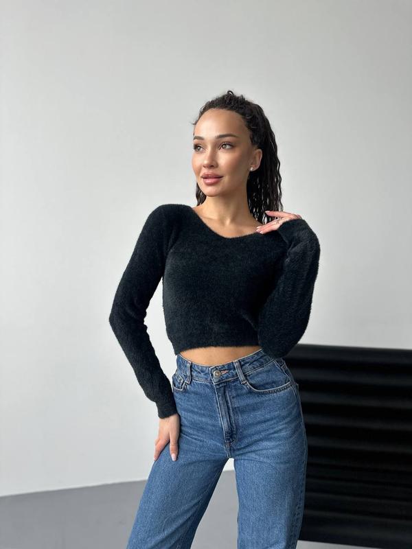 🔳НОВАЯ КОЛЛЕКЦИЯ 🔳 Стильный мягкий ангоровый укороченный свитер Материал - ангора травка ( тянется) 2 забарвлень: Черный Белый Размер универсальный 42/46 Ог до 100 см Длина 40 и тянется