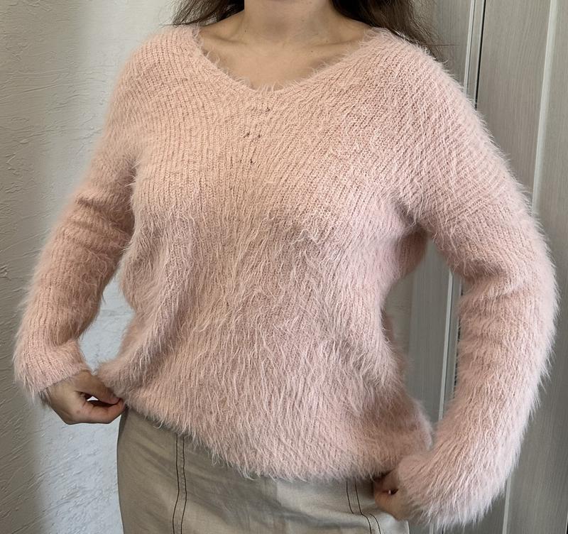 Стильный теплый и комфортный свитер нежно-розового цвета, можно надевать в любых вариациях