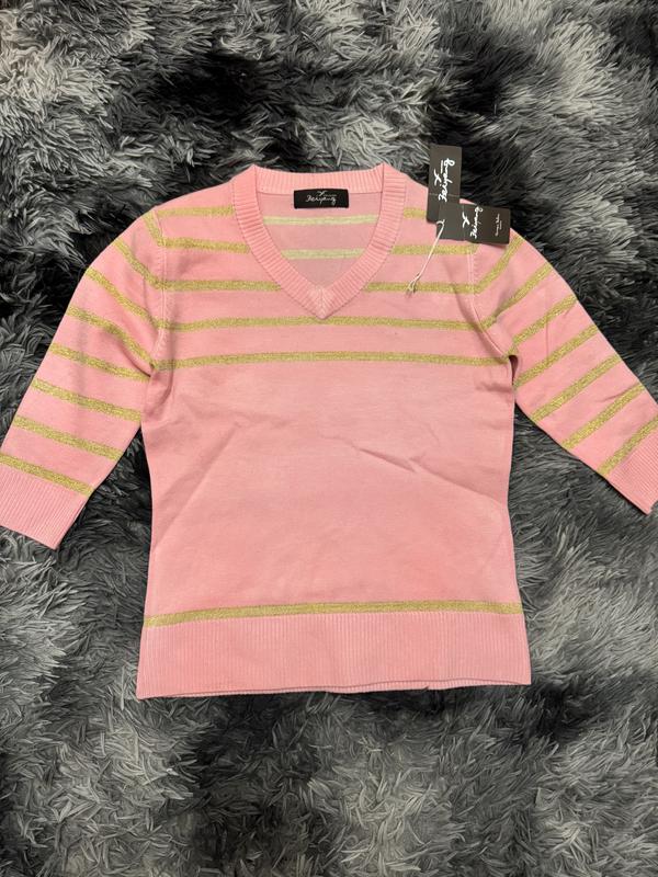 Качественный, натуральный состав свитера Мягкий и очень приятный к телу Нежно розового цвета со вставками люрекса Турция, новый Размер универсальный, рукав 3/4 42-46